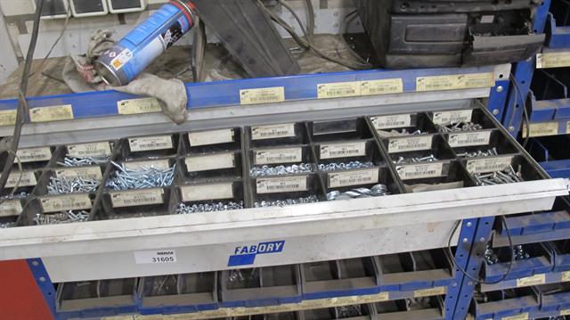 31605 - Werkplaats toebehoren materiaalrek Fabory met diverse inhoud
